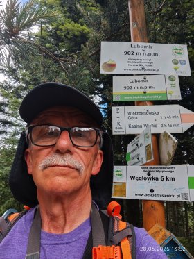 Szczyt zdobyty z Węglówki podczas przejścia jednego z odcinków szlaku głównego w ramach zdobywania dużej brązowej Górskiej Odznaki Turystycznej. Szczyt Lubomira odwiedzałem potem wielokrotnie. Nie jestem nawet w stanie policzyć ile razy. Podczas wizyt obserwowałem przygotowania do budowy oraz samą budowę nowego obserwatorium astronomicznego. data ostatniego wejścia: 28.06.2025 Wejście potwierdzone pieczątką KGP oraz zdjęciem ze szczytu. Szczyt zdobyty podczas wycieczki na trasie: Węglówka - Lubomir - Kudłacze - Pcim. Dokładna wysokość szczytu nie jest chyba zbyt łatwa do ustalenia, bo według pomiarów z roku 1997 wynosiła 912 m n.p.m., z roku 2023 już tylko 904 m n.p.m., a na szczycie jedna tablica podaje wysokość 904, a druga 902 m. |