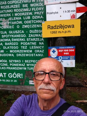 Szczyt zdobyty podczas podczas kilkudniowej wycieczki z rodzicami. Trasa tego dnia: Przełęcz Obidza - Radziejowa - Przehyba - Dzwonkówka - Krościenko. Nie wykluczam, że byłem na Radziejowej już wcześniej, w latach 1964 - 1967, ale dopiero z 1968 roku mam potwierdzenie w książeczce GOT. Potem odwiedzałem Radziejową kika razy. data ostatniego wejścia: 27.06.2025 Wejście potwierdzone pieczątką KGP i zdjęciem ze szczytu. Szczyt zdobyty podczas wycieczki na trasie: Przehyba - Radziejowa - Przełęcz Obidza - Eliaszówka - Wysoka - Jaworki. |