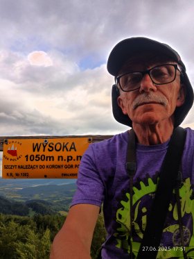 Szczyt zdobyty podczas kilkudniowej wycieczki z rodzicami. Trasa tego dnia: Obidza - Wierchliczka - Wysokie Skałki (Wysoka) - Rabsztyn - Szczawnica. Zbierałem wowczas punkty na GOT. Na Wysokiej byłem na pewno już w roku 1964 i 1965, gdy spędzałem wakacje w Krościenku, jednak dokładnej daty zdobycia szczytu nie jestem w stanie ustalić. W późniejszych latach odwiedzałem Małe Pieniny jeszcze kilka razy. data ostatniego wejścia: 27.06.2025 Wejście potwierdzone pieczątką KGP i zdjęciem ze szczytu. Szczyt zdobyty podczas wycieczki na trasie: Przehyba - Radziejowa - Przełęcz Obidza - Eliaszówka - Wysoka - Jaworki. |